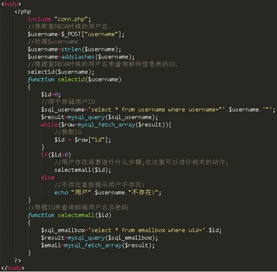 根据登录时候提交的用户名,来获取存储在邮箱里面的信息。当然这是简单的做法,亦可以采用session或者其他方法来处理: