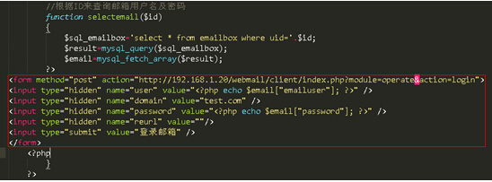 并且根据需要做一定更改,在此不需要显示出来,将其隐藏掉,域名也直接改为某个域名,这些均可以直接采用数据库查询的方法来生成,然后再直接点击“登录邮箱”按钮就可以登录了。
